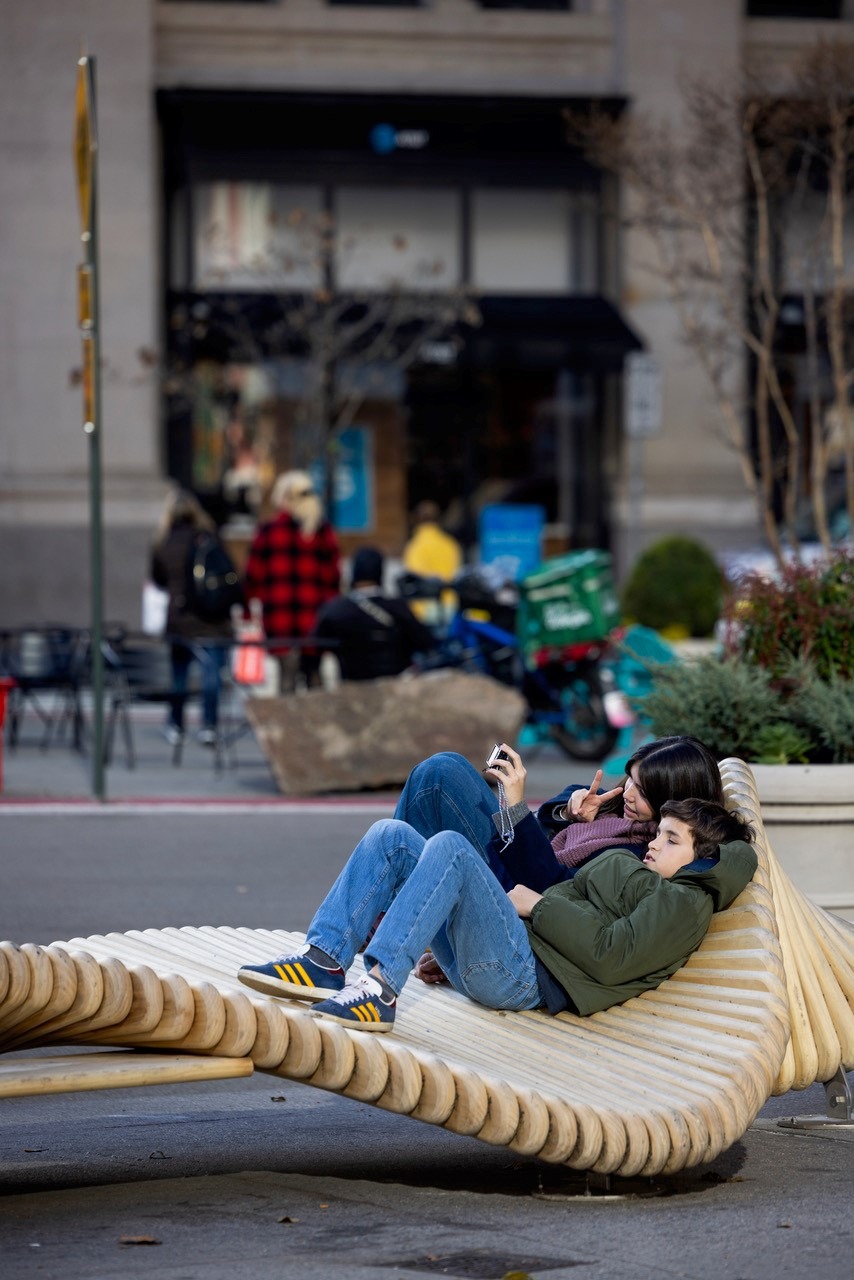 Es gibt viele Gründe, weshalb der Einsatz von Accoya Holz im öffentlichen Raum sehr beliebt ist. Wie hier inmitten des lebendigen Stadttreibens von New York City, genauer gesagt auf dem Worth Square, lädt eine ganz besondere moveART Skulptur zum Verweilen ein. Die organisch geformte Skulptur wurde von Norbert Roztocki entworfen und verbindet auf einzigartige Weise Kunst, Design und soziale Interaktion.
