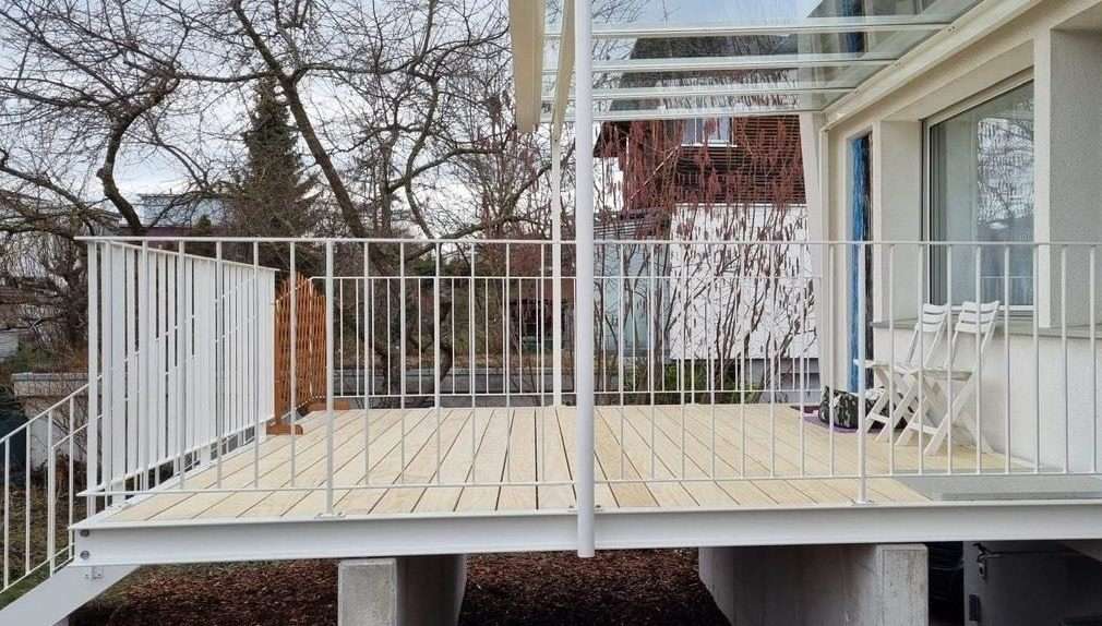 Der Frühling kann kommen. Für die Bewohner dieses Einfamilienhauses in Zollikofen hat die Firma Schreinerei Gerber AG einen Terrassentraum erfüllt. Der Accoya Terrassenboden sowie die verleimten Treppenstufen wurde von unten unsichtbar verschraubt. Dies verleiht der Terrasse eine besonders schöne und natürliche Optik.