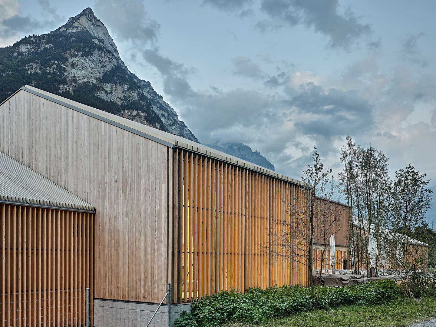 Auf der Fahrt Richtung Süden fällt die Gotthard Raststätte bei Erstfeld besonders auf. Der eindrucksvolle Holzbau fügt sich elegant in die imposante Berglandschaft ein. Für die Dachlamellen sowie das Terrassendeck haben sich die Verantwortlichen für das nachhaltige und dauerhafte Accoya Holz entschieden.